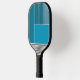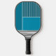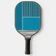 This pickleball paddle has a geometric design of a large teal rectangle in the upper left corner, darker teal stripes in the upper right corner, a lighter smaller teal rectangle below the stripes, and black lines across the bottom. If you like the design but prefer different colours, message me.