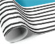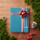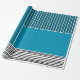 This wrapping paper has a geometric design of a large teal rectangle in the upper left corner, darker teal stripes in the upper right corner, a lighter smaller teal rectangle below the stripes, and black lines across the bottom. If you like the design but prefer different colours, message me.