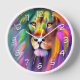 AI generated colourful yellow, orange, purple, green and yellow lion artwork. geneartivecontent