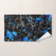 Very abstract drawing of black stained with shades of grey that when viewed from long distance look like the twisted format and soft glow of pelt of bats, on stained turquoise blue and some royal blue tone.
