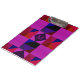 Geometric triangles pattern in magenta, pinks and purples with central monogram.