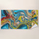 abstract marble swirls yellow teal turquoise blue beach towel