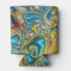 abstract marble swirls yellow teal turquoise blue can cooler