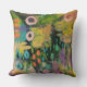 Abstract Mixed Media Floral Primitive Art Painting Throw Pillow