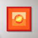 An abstract geometric modern art design of squares in shades of red and brown with a fiery orange red sun.