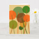 An abstract geometric modern art floral design of round flowers on stems in orange, green and brown colors.