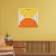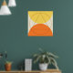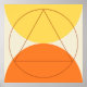 An abstract geometric modern art design of circles and triangle in shades of orange and yellow colors.