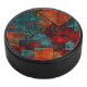 Abstract Modern Colourful Cool Artistic Pattern. Red Orange Blue Squares Abstract Art Hockey Puck.