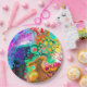 Purple, blue, red, yellow, teal, orange colourful digital pour painting fluid art.