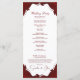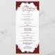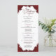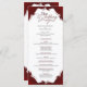 This wedding program card features a modern minimalist design in bold red, creating a refined and elegant impression. The front page neatly displays the wedding details in a clear and stylish format, while the back highlights the couple’s names in a simple framed layout that can be personalized. The rich red tones enhance the minimalist style, making this program card perfect for elegant, formal, and contemporary weddings.