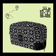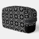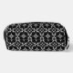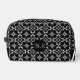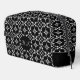 Toiletry Bag with a bokeh inspired pattern with white and grey dots and oval shapes on black background.