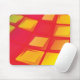 Modern mousepad with redish background and warm yellow squares.