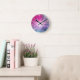 Abstract Neon Pink and Blue Energy Blast Graphic Round Clock