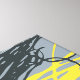 Organic shapes reminiscent of a nest in neutral greys with a pop of yellow.