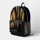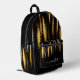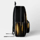 Abstract night lights sea gold black Custom name Printed Backpack. Photo of sparkly glistening night lights sea reflection in black and gold shiny colours. Experience the mesmerizing beauty of the sea at night with our Abstract Night Lights Sea Shiny Gold Black elegance.