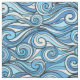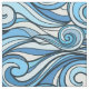 Bold abstract illustration of ocean waves in various blues with black outline, seamless repeat pattern