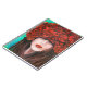 Abstract oil painting showing woman face and red r notebook