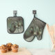 Abstract Olive Sage Green Grey Fractal Art Fantasy Oven Mitt & Pot Holder Set