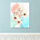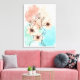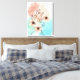 Abstract One Line Face Art – Leaf Horns, Pink Flower Lips & Watercolor Stains Canvas Print