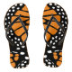 An abstract orange and black Monarch butterfly pattern decorate the flip flops. The beauty, this stylish butterfly pattern allows colour-customization by modifying the fill colour. For colour and design customization, contact https://t.me/KBMD3signs_chat.