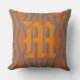 Abstract Orange Grey Pattern Custom Monogram Throw Pillow