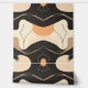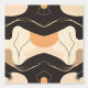 A modern abstract design featuring fluid organic shapes and earthy tones, creating a harmonious balance of black, beige, and warm brown hues. The curving lines and layered shapes resemble natural forms, adding a calming, stylish touch. This pattern has a sophisticated, earthy palette that suits a variety of uses, such as wall art, home decor, or fashion accessories, giving any space a warm, contemporary vibe.