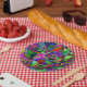 Great accent for an outdoor summer party. Bright colors, vibrant floral design
