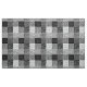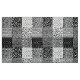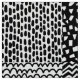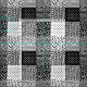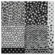 A repeating abstract patchwork pattern made up of a tile of nine squares of different or tonally reversed hand drawn abstract patterns.