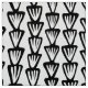 An abstract pattern made up of columns of hand drawn irregular cone like shapes with ray like decoration creating a flower like appearance with a nice inky spontaneous look. This design uses a vector graphic so the pattern size can be increased or decreased. The background colour can also be customized.