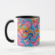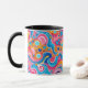 This is a Habatour Creations coffee mug, filled with an authentic modern abstract digital pattern design, inspired by fluid art