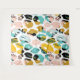 Abstract pattern with organic shapes and pastel colours. Yellow, blue-green, and pink with black accent on a white background.