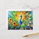 Abstract Peacock with Sunflowers in Painting Postcard