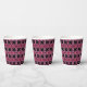 This paper cup features a beautiful fractal pattern with a black percent sign on an abstract red, pink, and purple background.