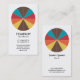 A clear stylish and attractive business card template with a 12 segmented circle motif in a palette of 5 colours. Main company details on the front, with name and personal contact on the back, with the same motif and style.
