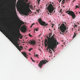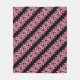 This fleece blanket has a modern design with an abstract pattern in bold pink on a black background.