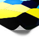 The image features an abstract polygonal pattern with a mosaic-like appearance. The polygons are filled with various shades of blue, yellow, and white, creating a vibrant and dynamic composition. The colours range from light sky blue to deep navy, and from pale yellow to bright golden hues.