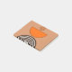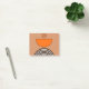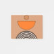 These Post-It notes have a geometric design of an orange half-circle above black and white arches with a tan circle above it all.
