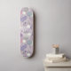 This vibrant skateboard features an abstract arrangement of variously styled and coloured circles, reminiscent of polka dots, set against a rich purple backdrop. Accentuated with dynamic paint strips and splatters in different hues of purple, the pattern exudes a playful yet artistic flair. The combination of geometric shapes and expressive splashes creates a visually engaging composition, perfect for adding a touch of modern creativity to any setting.