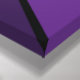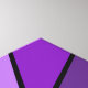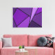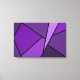 Inspired by stained glass, this stylish geometric design contains polygons in various shades of purple outlined in black. A lavender triangle slashes in from the upper right with an array of progressively darker purple quadrangles and other shapes spiralling around it from light to dark. Two dark purple shapes ground the left side of the original design.