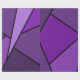 Inspired by stained glass, this stylish geometric design contains polygons in various shades of purple outlined in black. A lavender triangle slashes in from the upper right with an array of progressively darker purple quadrangles and other shapes spiralling around it from light to dark. Two dark purple shapes ground the left side of the original design.