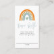 An adorable baby shower diaper raffle card. The design features a cute rainbow in shades of orange, gold, green and blue and is perfect for an event honouring a baby boy.
