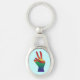 An abstract painting of the peace sign hand using colours of the rainbow, by CherylsArt, is printed on custom keychains. I had fun using my own hand to create this design.