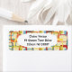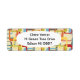 These return address labels have a mid-century modern design of overlapping rounded rectangles in shades of light blue, orange, gold, brown, deep red, teal, and pea green. If you like the design but prefer different colours, message me.