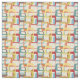 This fabric has a mid-century modern design of overlapping rounded rectangles in shades of light blue, orange, gold, brown, deep red, teal, and pea green. If you like the design but prefer different colours, message me.