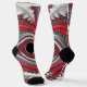 These socks feature a beautiful gradient spiral fractal design in red, black, white, and grey.