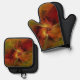 Abstract Red Orange Brown Green Fractal Art Flower Oven Mitt & Pot Holder Set
