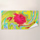 Abstract Red Rose on Yellow and Aqua Swirl Bath Towel Set