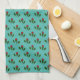 Abstract Red Roses & Leaves Floral, Fountain Blue Kitchen Towel