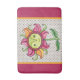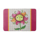 A Red and Pink Polka Doted Bath Mat With Colourful Centre Smiling Sunflower