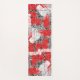 Abstract, unique red white, and black design with your name on a black background on the back yoga mat